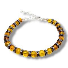 925 Ayar Gümüş Baltık Damla Kehribar ve Hematit Bileklik %100 Orijinal 925 Ayar Gümüş ve Sertifikalı Baltık Damla Kehribar